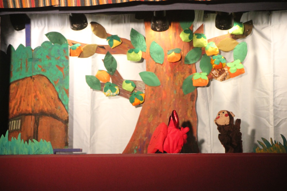11月9日(日)の午後、いしかわ子ども交流センターで、「人形劇と昔話」の公演を行いました。昔話は「おおかみを退治したこま犬」と「ないた赤おに」、人形劇は「さるかに合戦」でした。1年生の女子児童の友情出演もあり、多くの来場者が昔話や人形劇を心ゆくまで楽しみました。